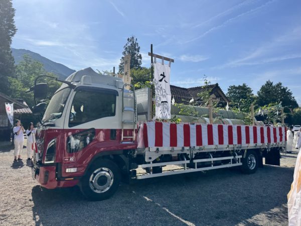 加子母の国有林で伐採した御用材が各地を巡りながら伊勢神宮まで運ばれていきます。